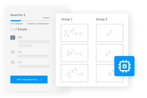Gradescope ayuda a los instructores con flujos de trabajo digitalizados que reducen las tareas de calificación repetitivas y permiten ofrecer retroalimentación de calidad a los estudiantes más rápidamente. La agrupación de respuestas te permite formar y calificar grupos de respuestas similares en lugar de calificar las respuestas de los estudiantes individualmente. La agrupación de respuestas asistida por IA puede formar automáticamente grupos sugeridos de preguntas con respuesta corta y opción múltiple para tu revisión, junto con la calificación automática de hojas de respuesta una vez que se suben las entregas de los estudiantes. Los atajos del teclado ayudan a los instructores a reducir aún más el tiempo de calificación, mientras que las rúbricas dinámicas hacen que la calificación colaborativa sea eficiente y permiten la corrección rápida de errores de calificación de forma retroactiva. Recupera un tiempo valioso que el personal docente puede destinar a la enseñanza y a la planificación de lecciones.