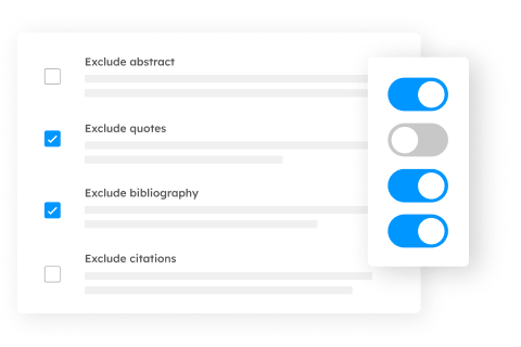 Concéntrate en las coincidencias más críticas, excluyendo automáticamente preimpresiones y otras secciones personalizables para mejorar la eficiencia del proceso de revisión.